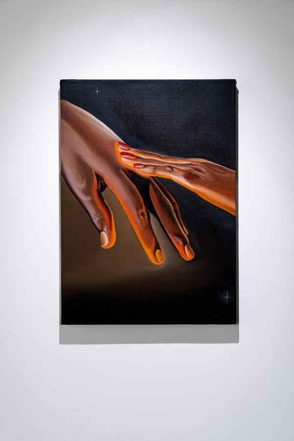 Vince's work is a reflection of the human experience, exploring the interplay between light and shadow to symbolise the future and the past, hope and despair, and life and death. The glowing skin in her paintings represents the transference of energy and sentiment, emphasising the power of visual communication and the visceral experience of touch.