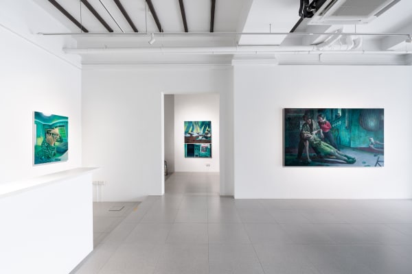 Cuturi Gallery is proud to present Night Call by Casey Tan (b. 1994, Singapore). Navigating a delicate balance between reality and imagination, Tan's new selection of paintings sheds light on the daily turbulence that goes on within our inner worlds. By tapping into a wealth of emotions that come with charting how it feels like to be an observer and a participant held within the confines of our own bodies, Tan paints different narratives that unfold within private moments. With canvases that represent a kaleidoscope of joy, vulnerability, and introspection, Tan explores these feelings through the use of colours and characters that shape the emotional landscape of our interconnected society.