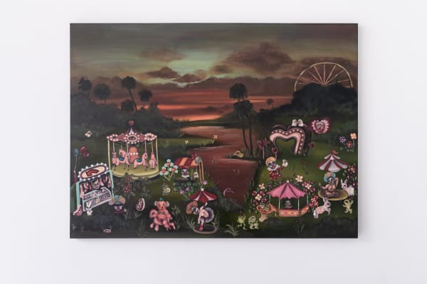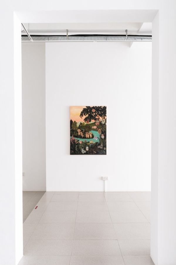 Bearing compositional resemblance with reverence to the northern renaissance masterpiece, The Garden of Earthly Delights by Hieronymus Bosch, Koh’s works involve a high level of meticulous yet spontaneous details, leaving the audience to decipher the allegories and symbolisms planted within her paintings.