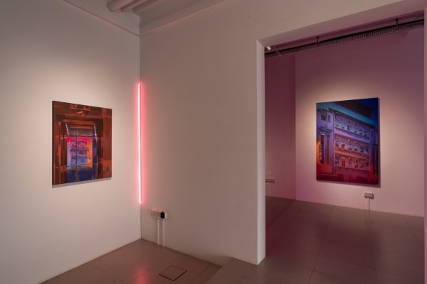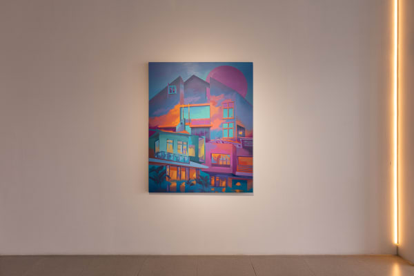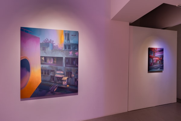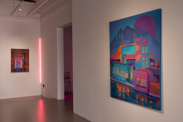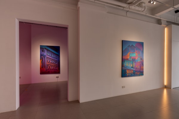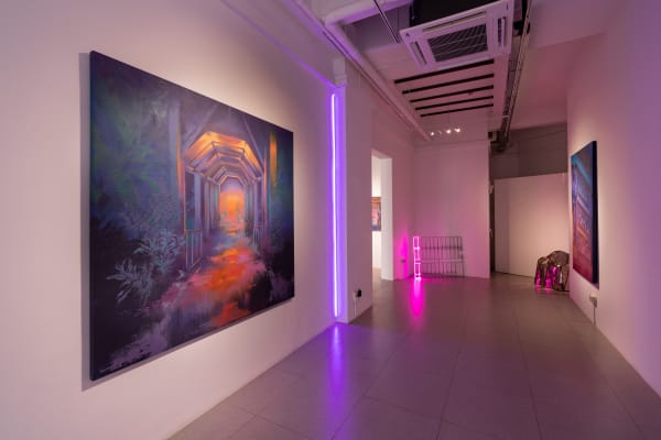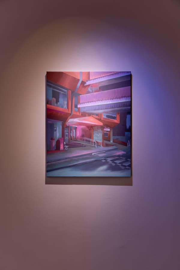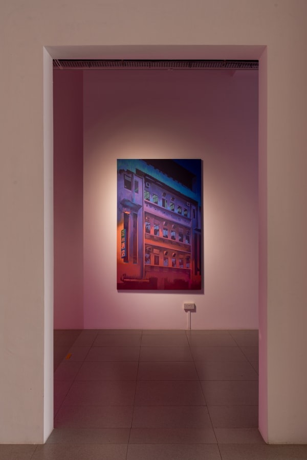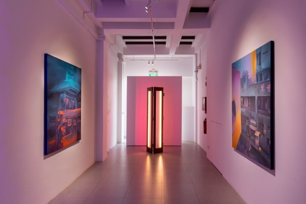 Cuturi Gallery is delighted to present in somnia by Shen Jiaqi (b. 1989, Singapore). This marks Shen’s second solo show with Cuturi Gallery exhibiting a fresh body of works investigating the collective subconsciousness of yearning experienced by city-dwelling individuals for sanctuaries that suggest comfort and privacy within existing urban landscapes. Shen’s practice works between the mediums of painting, light and object installations to prompt the audiences with materials and hues that are reminiscent of a state of transience between memory and current reality, while evoking interpretations towards familiar spatial presences.