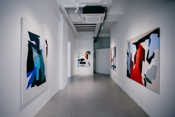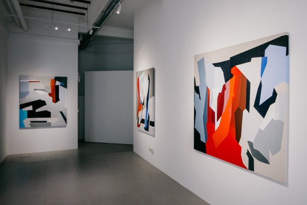 To Delphine, each painting in this series looks back at her own challenges. To her, these paintings summarize the tensions and endurance she had to go through. Each of her geometrical forms, and the choice of colours are a visualization of her own self.