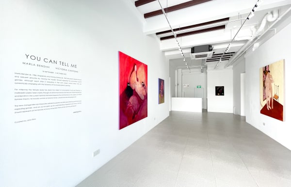 The exhibition You Can Tell Me, at Cuturi Gallery, Singapore, features two painters, Marla Bendini (b. 1986, Singapore) and Victoria Cantons (b. 1969, UK), who both deliver on these cultural aspirations by presenting deeply personal and relevant artworks that move the needle forward regarding the conversation around gender. Although each artist is operating in their own unique cultural arena, they are symbiotically engaging with the historicity of the female gaze in painting. For millennia the female body has been the object of consumption in art and literature, a malleable subject seen mostly through an almost exclusively masculine lens. Profound discussions within the intellectual discourse surrounding the power of the female psyche have transformed societal norms on a global scale. However, achieving this equilibrium in the art world is far from accomplished; and there is still much work to be done in expanding the embrace of gender identity as spectral reality in contemporary art.