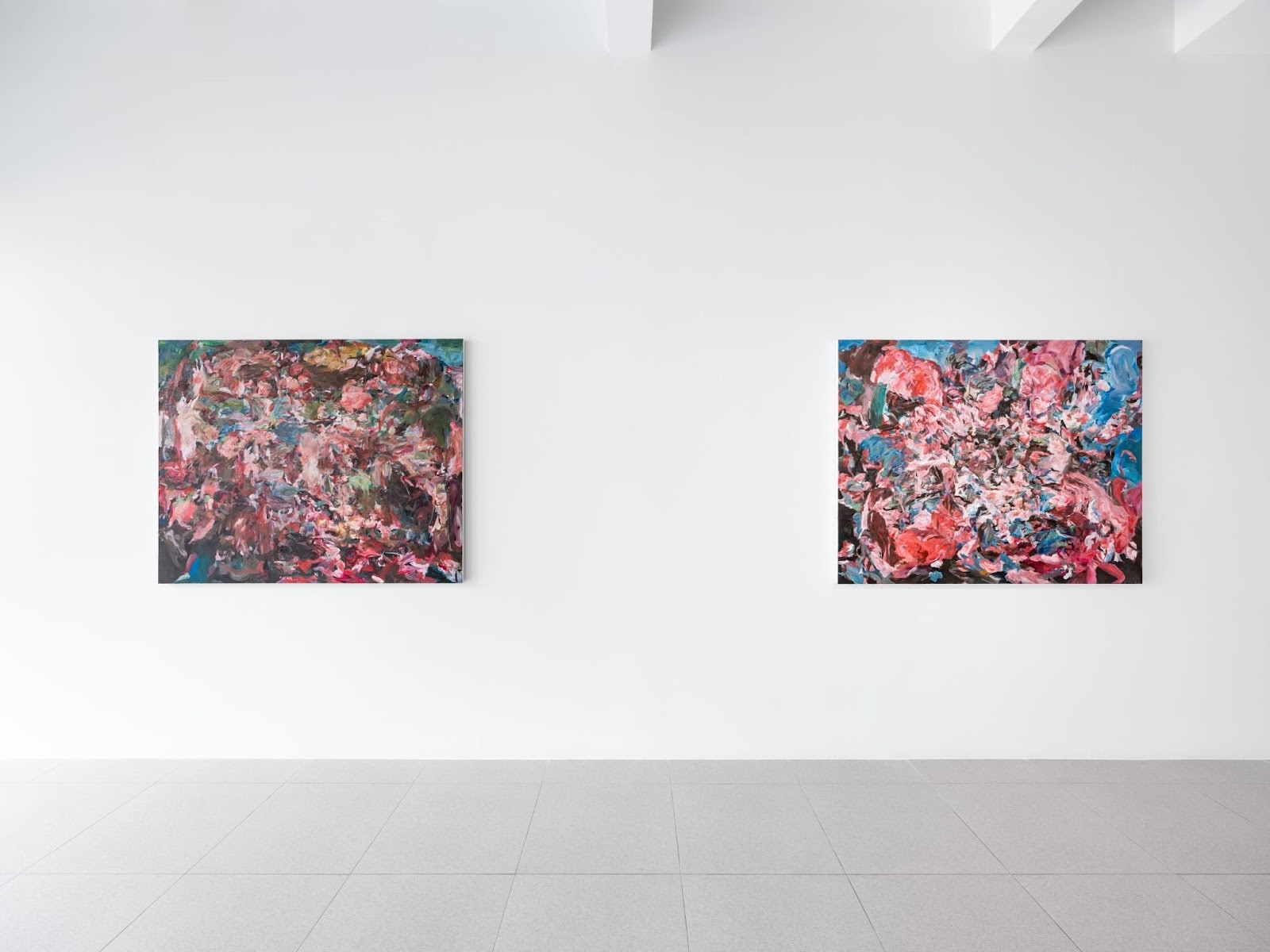 Quan Lim, Bird Shadows (2025) Oil on canvas, 122 x 152 cm; Quan Lim, Last Hour (2025) Oil on canvas, 122 x 152 cm (left to right)